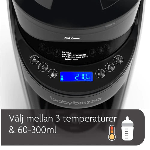 Baby Brezza Formula Pro Advanced pelavélin er einföld og fljótleg leið til að blanda pela. Ekkert að mæla, ekkert að hræra*, ekkert vesen. Hægt er að stilla magn á milli 60 og 300 ml við stofuhita, líkamshita eða heitara. Vélin virkar með nánast öllum tegundum mjólkurdufta og pela.