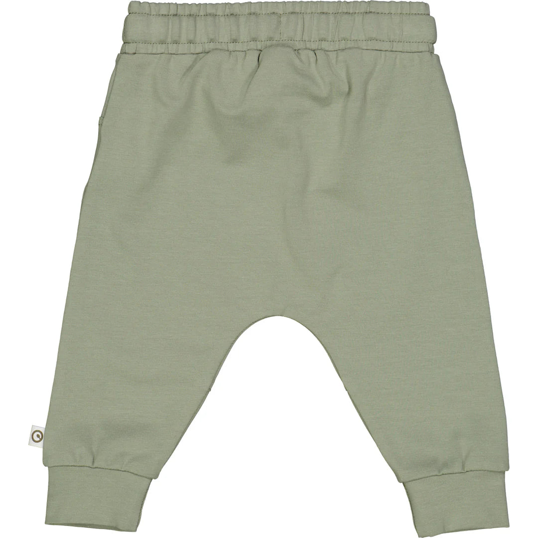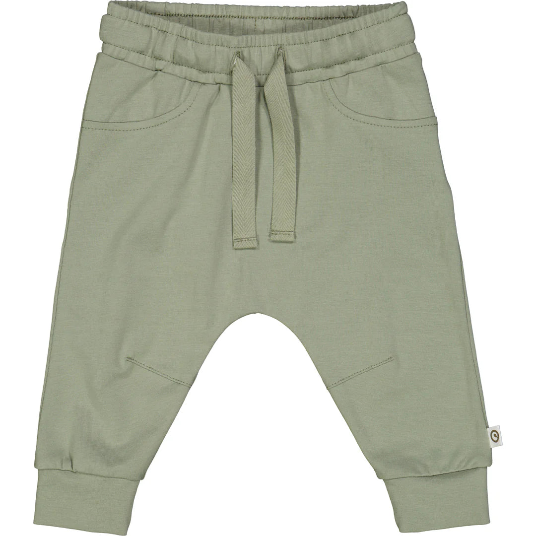 Það er teygja í mittinu og reim sem hægt er að binda eftir þörfum.