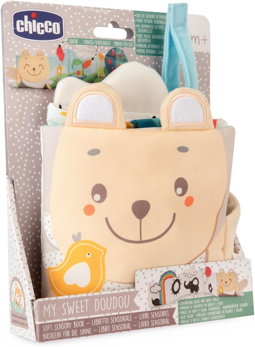 Falleg mjúk bók með fallegum myndum, spegli, skrjáfur ofl. Öðru megin er hún svart/hvít en hinu megin litrík.