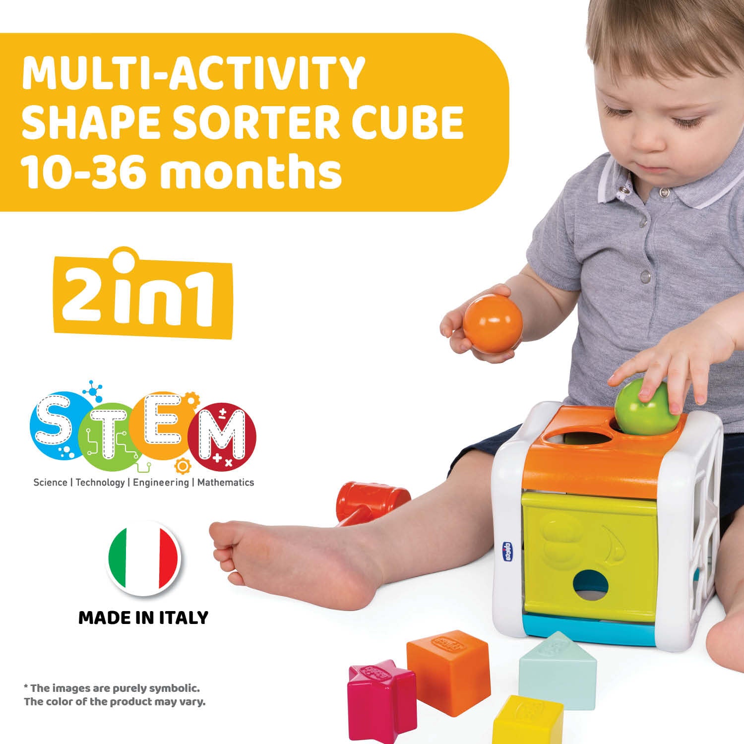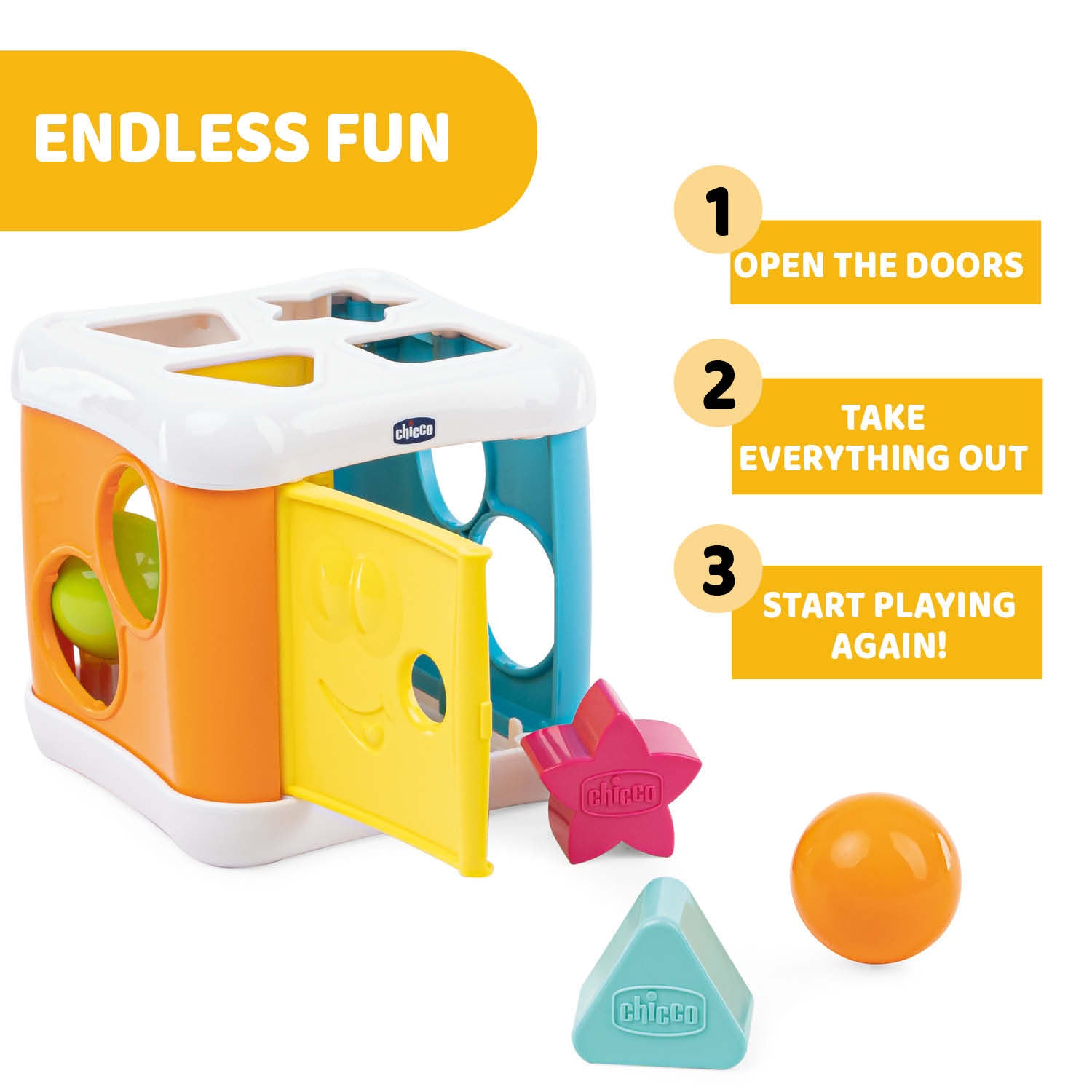 Chicco formabox með 4 formum, 2 boltum, hamri og 2 hurðar.