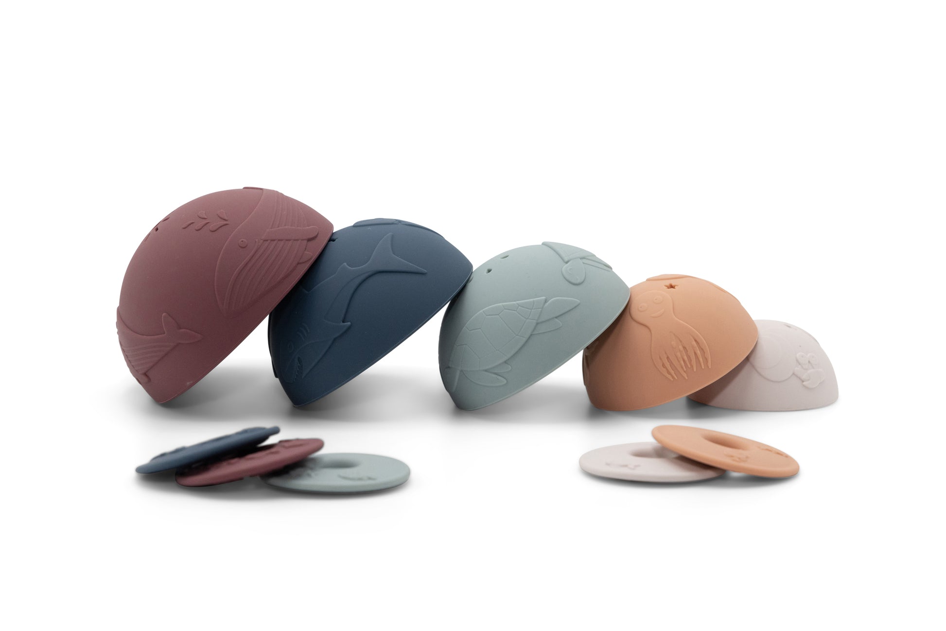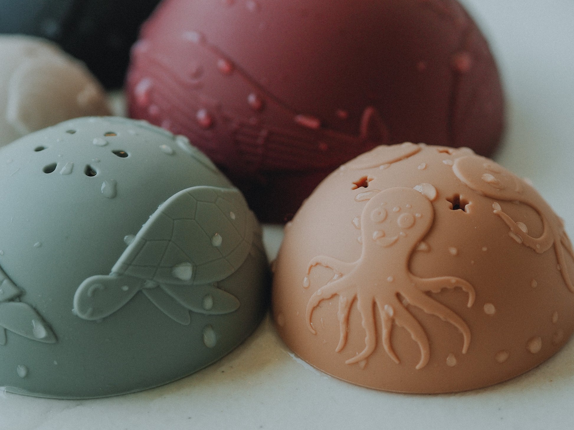 Við elskum þetta sílikonefni. Það má blotna og þornar fullkomlega án þess að draga í sig myglu eða önnur óæskileg efni. Það er líka einstaklega endingargott og tilbúið í líflegustu skynjunarleiki eða baðævintýri!