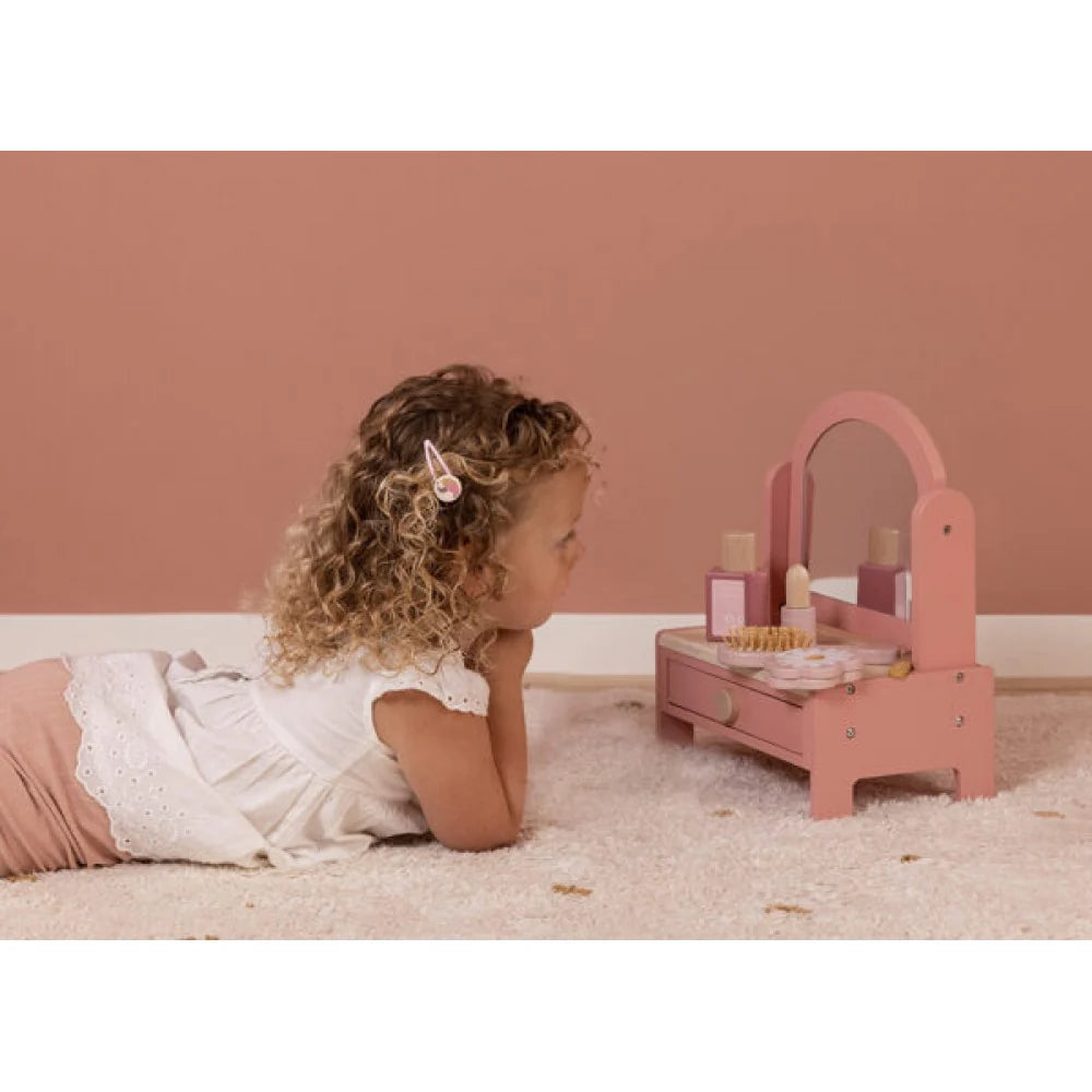 Viðar snyrtiborð með nokkrum dásamlegum fylgihlutum