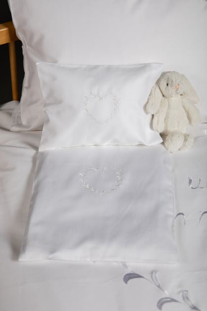 Sofðu unga ástin mín er yndislega fallegt sængurverasett fyrir ungbarna, ofið úr 600 þráða satín Pima gæðabómull. Á framanverðu sængurverinu er fallegt bróderað hjarta sem innan í stendur textinn „Sofðu unga ástin mín“.